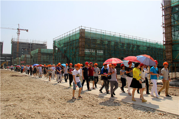 2014年6月11日,溫州市化學品交易中心項目部組織市場經(jīng)營戶130余人,赴化學品交易中心施工現(xiàn)場實地參觀、考察交流。本次考察交流是明年化工市場整體搬遷前期動員工作內(nèi)容之一,主要是考察參觀交易中心項目建設(shè)情況,聽取市場設(shè)計建設(shè)的理念和經(jīng)營模式的介紹。在交流會上,對考察團提出的提貨時間、物流配送的效率,儲存貨品的拆分,涉及商業(yè)秘密等問題,給予解答。